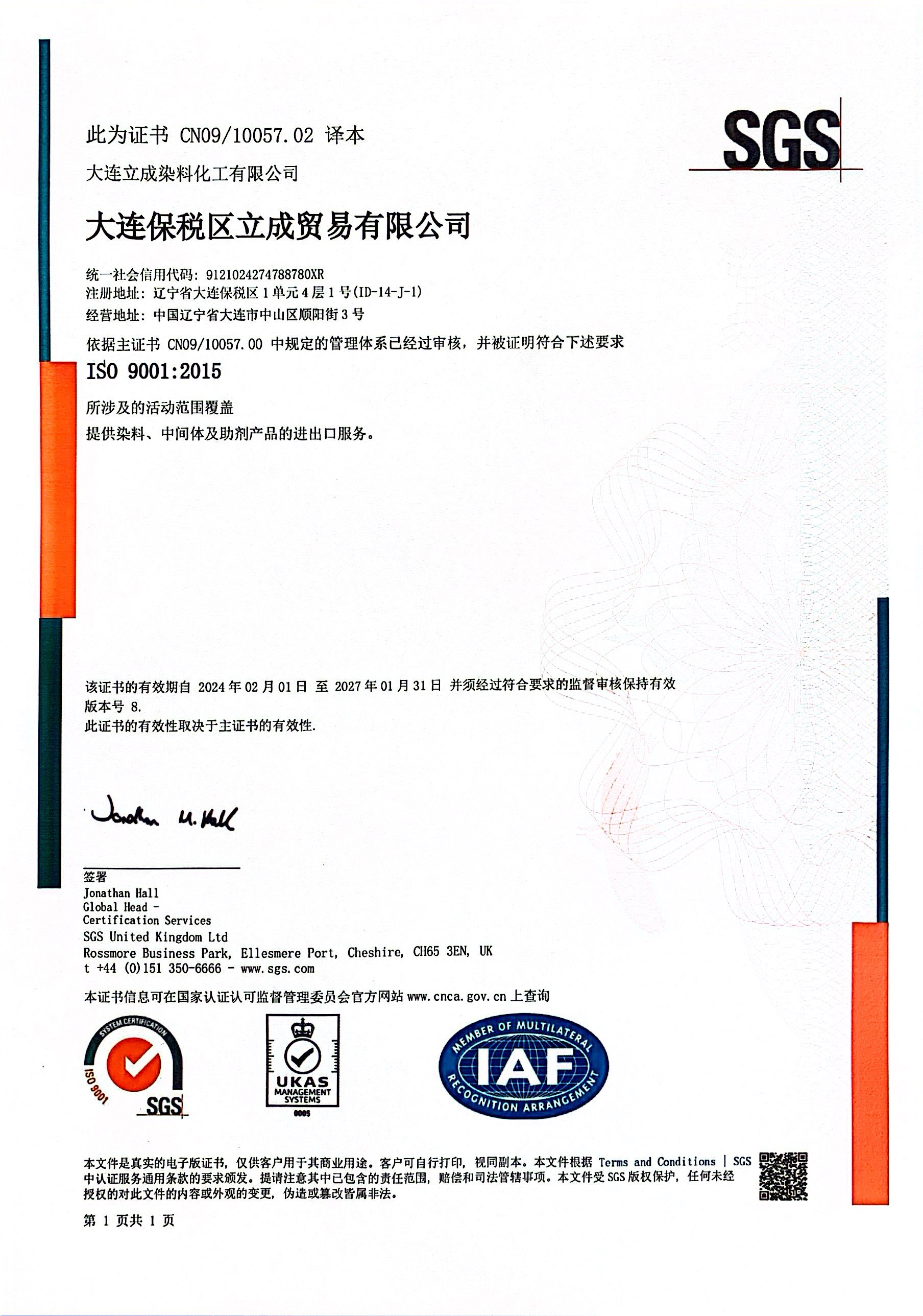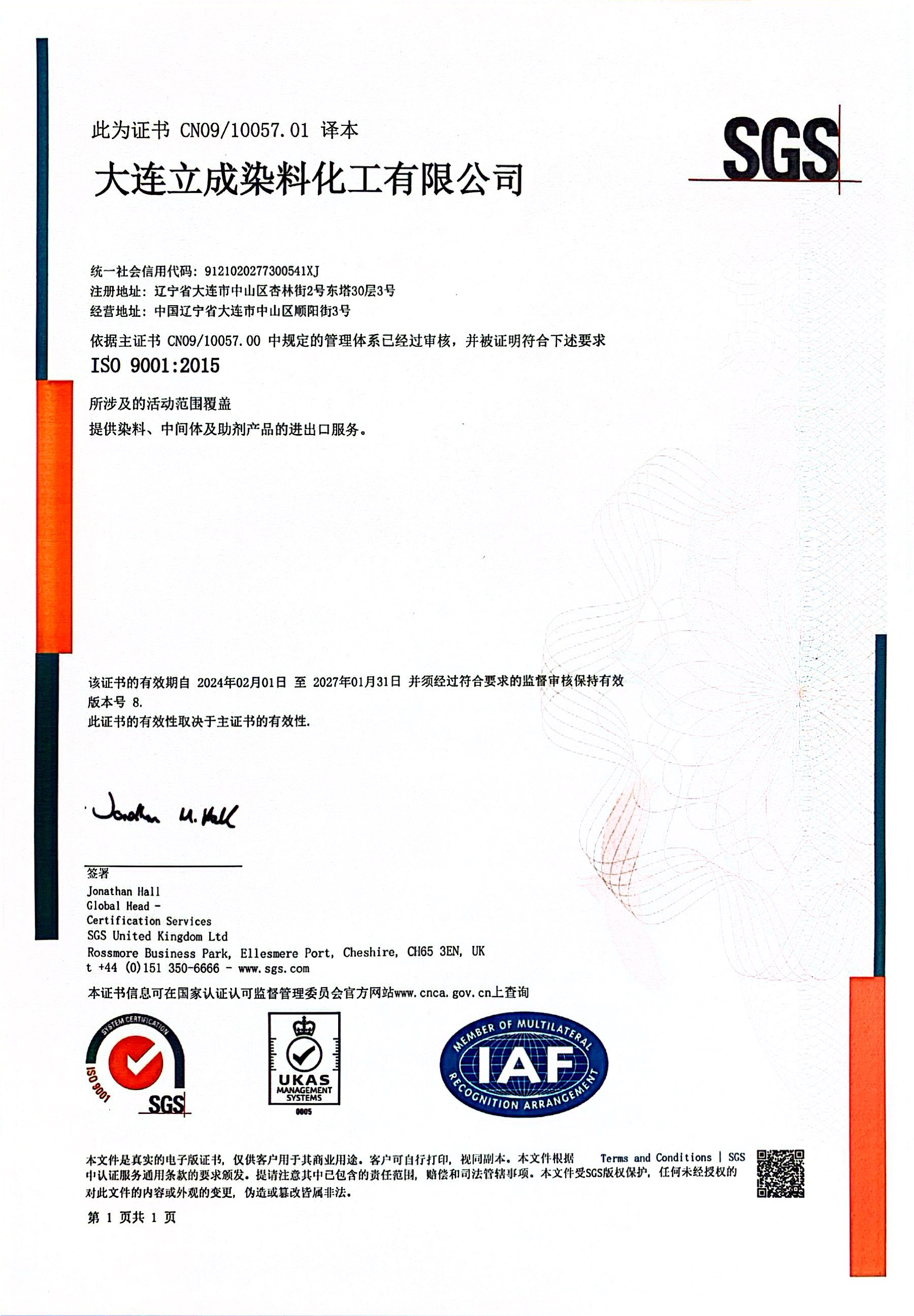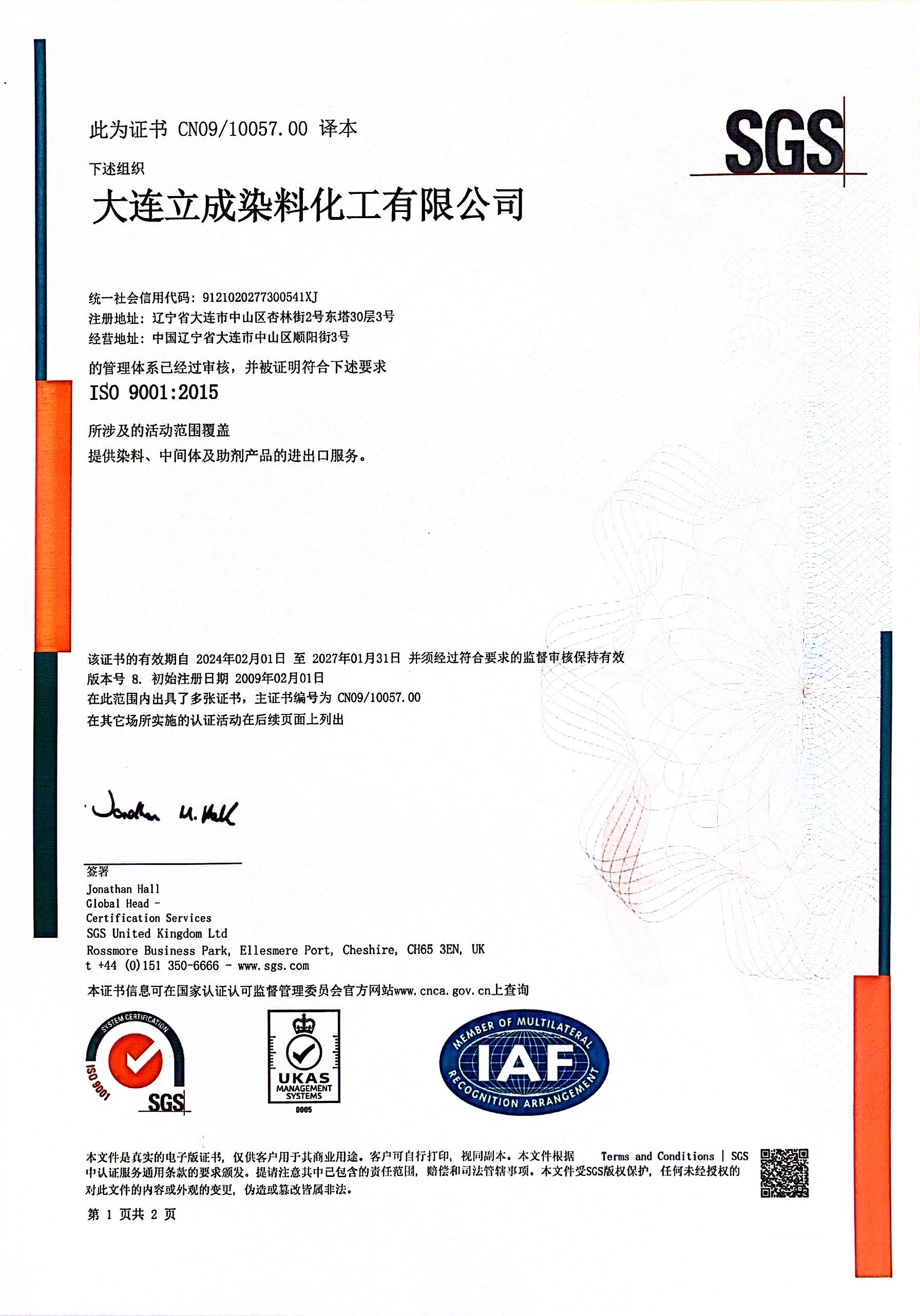 大連立成染料化工有限公司成立于2003年,是一家專業(yè)經(jīng)營(yíng)染料、中間體及助劑的公司。自創(chuàng)辦以來,憑借著專業(yè)化的服務(wù)、穩(wěn)定優(yōu)質(zhì)的產(chǎn)品品質(zhì)和有競(jìng)爭(zhēng)力的價(jià)格,迄今已有六十多家企業(yè)選擇了我們的產(chǎn)品,我們也在行業(yè)內(nèi)取得了良好的口碑。